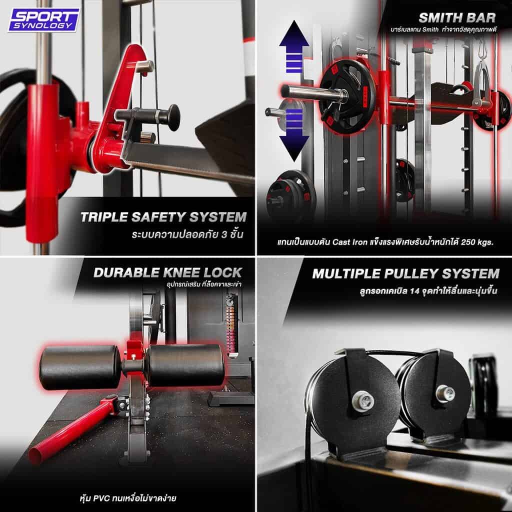 Smith Machine ครบทุกฟังก์ชัน ที่สุดของเครื่องออกกำลังกาย All in One รองรับการเล่นได้มากกว่า 250 ท่า หรือมากกว่านั้นขึ้นอยู่กับการประยุกต์ใช้งาน มาพร้อมตารางท่าฝึกพื้นฐาน ตอบสนองทุกความต้องการ มีเครื่องเดียวก็ฟิตได้จบครบทุกมัดกล้ามเนื้อ โครงสร้างเหล็กหนา รองรับการใช้งานหนัก วัสดุแข็งแรง ทนทาน งานคุณภาพ High Quality มาตรฐานจากอเมริกา