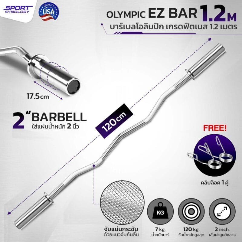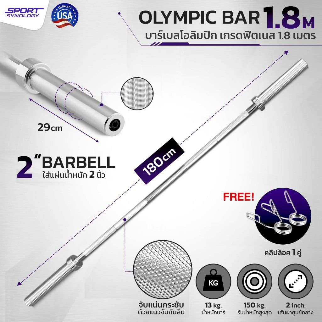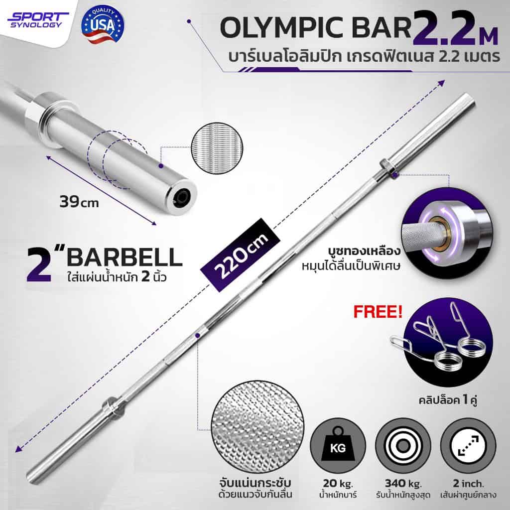 OLYMPIC BAR บาร์เบลโอลิมปิกขนาด 1.2 / 1.8 / 2.2 เมตร ที่ใส่แผ่นน้ำหนักขนาด 2 นิ้ว