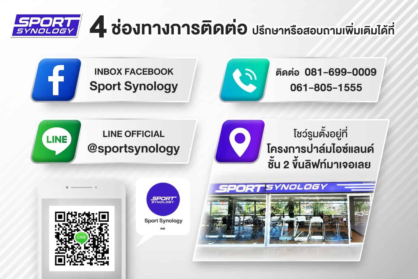 • สำหรับจังหวัดใกล้เคียง เช่น ฉะเชิงเทรา ชลบุรี สมุทรสาคร ระยอง สามารถจัดส่งพร้อมประกอบติดตั้งได้ค่ะ แต่จะมีค่าบริการจัดส่งเพิ่มเติมตามระยะทางค่ะ สามารถแชทสอบถามอัตราค่าจัดส่งเพิ่มเติมได้ทาง LINE : @Sportsynology